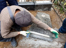 Когда основания были установлены, мы начали закреплять на них надгробья.